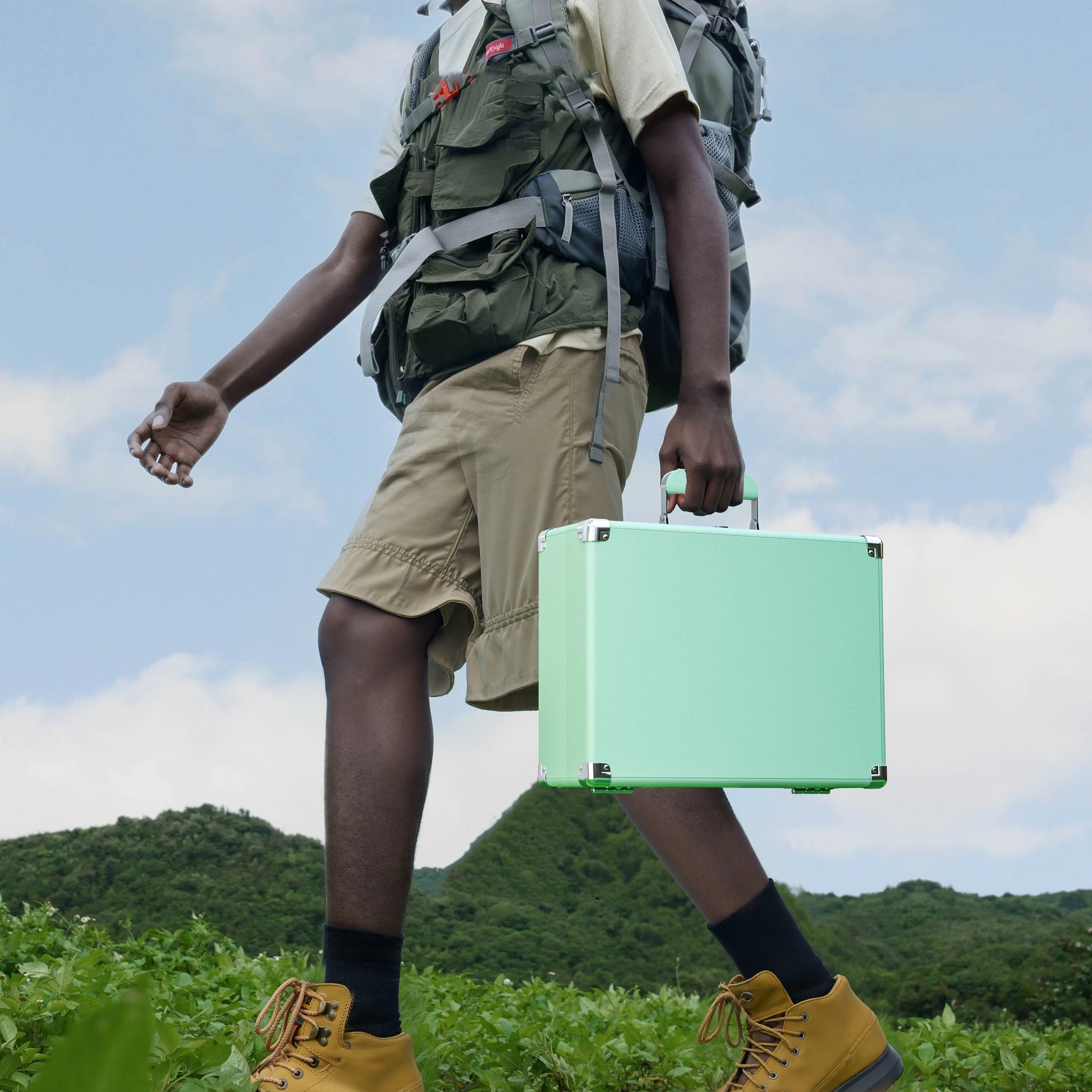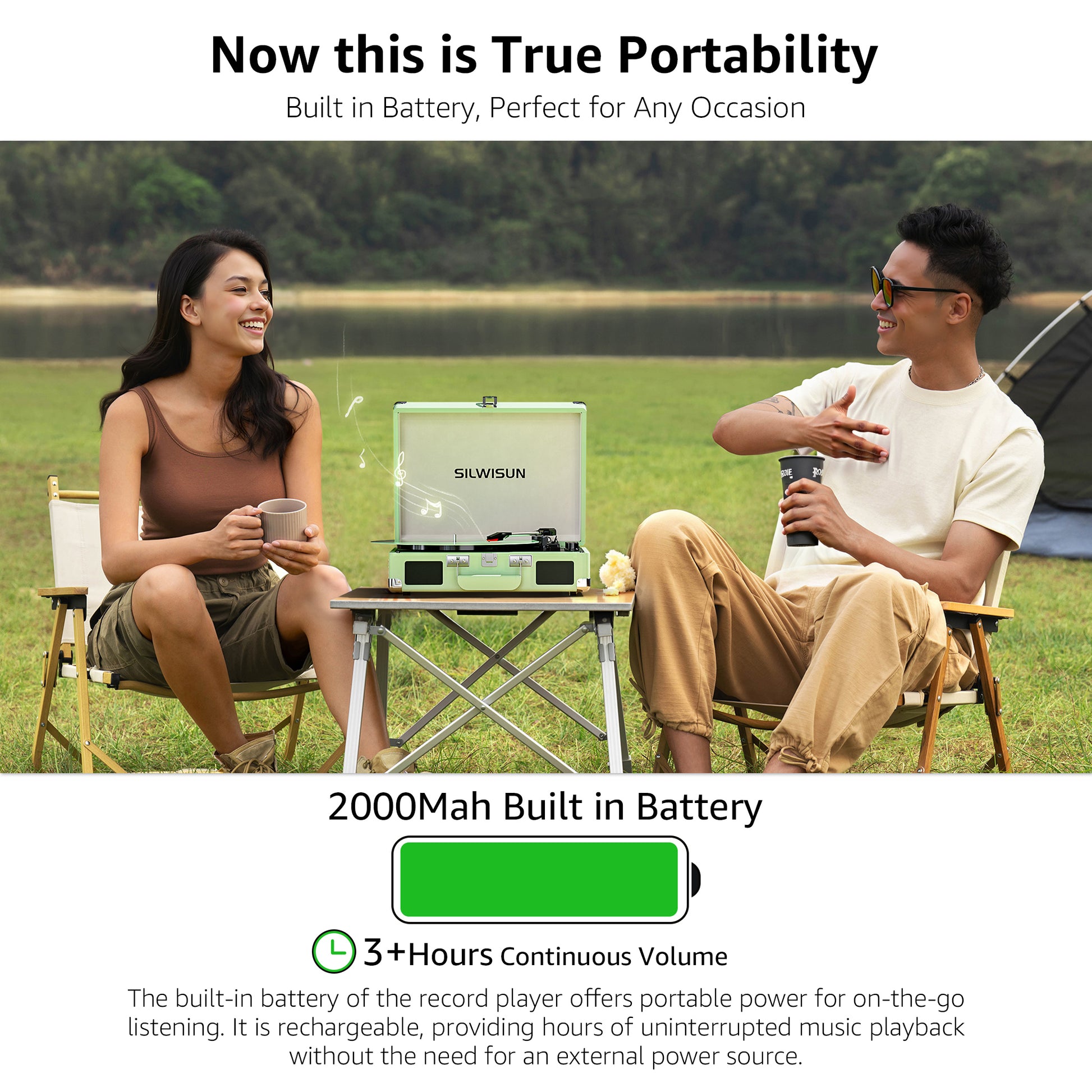 Green Stylish Record Player 3-Speed Portable Suitcase Turntable with Bluetooth, 3.5mm Audio Jack Vinyl Phonograph with Built-in Speakers/Battery 3.5mm Aux-in/RCA Line Out